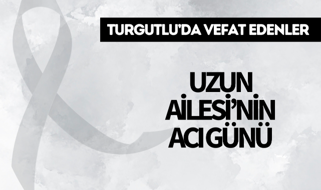 Uzun Ailesi’nin Acı GünüTURGUTLU İlçesi sakinlerinden Kulalı Mustafa Uzun’un eşi Selver Uzun hakkın rahmetine kavuştu. Cenazesi bugün ikindi namazına müteakip Hacı Ömer Camii’nde kılınacak cenaze namazının ardından yeni kabristanda toprağa verilecek.Yakınları: eşi Mustafa Uzun, oğlu Bülent Uzun, kızları Şerif Çakan, Teslime Zirek, torunları Mustafa Uzun, Efe Uzun, damadı Mehmet ZirekMerhumeye Allah'tan rahmet, yakınlarına başsağlığı dileriz.