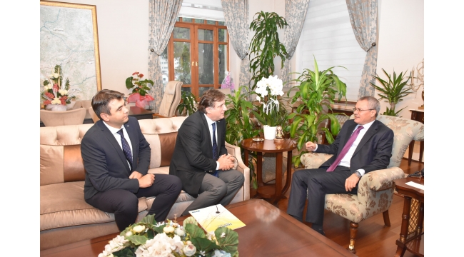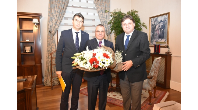 Manisa Valisi Ahmet Deniz, AKSA Manisa Doğalgaz Dağıtım A.Ş. Bölge Müdürü İbrahim Başaran ve İşletme Müdürü Yasin Korkmaz’ı makamında kabul etti.