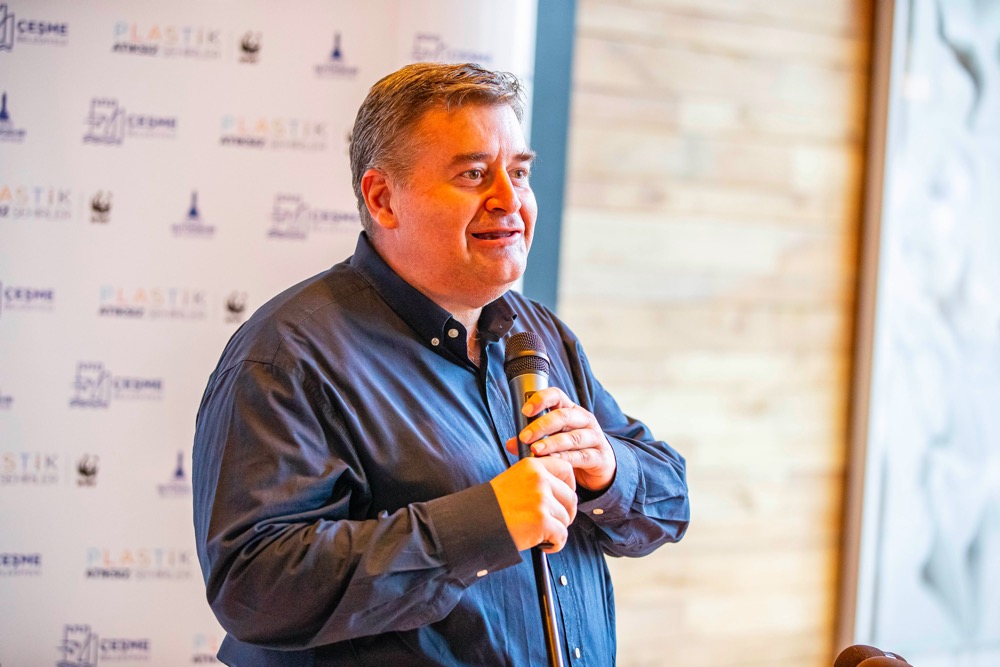 Çeşme Belediye Başkanı M. Ekrem Oran ise konuşmasında şu sözlere yer verdi: “İki yıl önce İzmir Büyükşehir Belediyemiz ve WWF-Türkiye öncülüğünde imzaladığımız Plastik Atıksız Şehirler Ağı pilot bölge protokolümüz ile sürdürülebilir gelecek adına çok önemli bir adım attık. 2021 yılı Ağustos ayında hazırlanan Eylem Planı çerçevesinde Çeşme Belediyesi’ne ait kafe, restoranlarımız ve otelimizde, belediyemiz sponsorluğunda düzenlenen organizasyonlarda ve halka açık etkinliklerde ıslak mendil, pipet ve yiyecek sosları gibi tek kullanımlık plastiklerin yasaklanmasına kademeli olarak başlandı. Ilıca Üretici Pazarı’mızda plastik poşet yerine kese kâğıdı ve pazar filesi kullanımına geçildi. Diğer yerel pazarlarımızda da bu uygulamaya hızla geçeceğiz.”