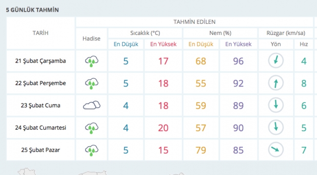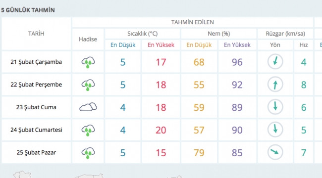 Yağış tekrar geliyorMeteoroloji Genel Müdürlüğü verilerine göre Turgutlu’da çarşamba ve perşembe günü yağış bekleniyor. Hava sıcaklıkarı ise çarşamba 5 ,perşembe 5 ,cuma 4,cumartesi, pazar tekrar yağış hava sıcaklıkları ise 4 20 derece arasında olması bekleniyor NURULLAH ÇANKAYA