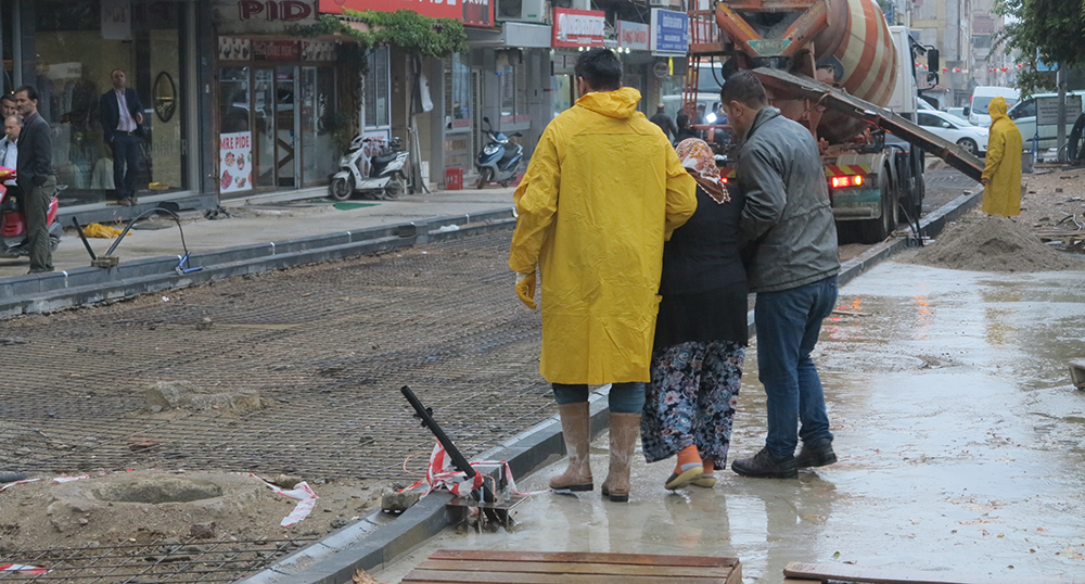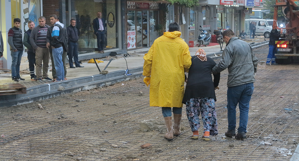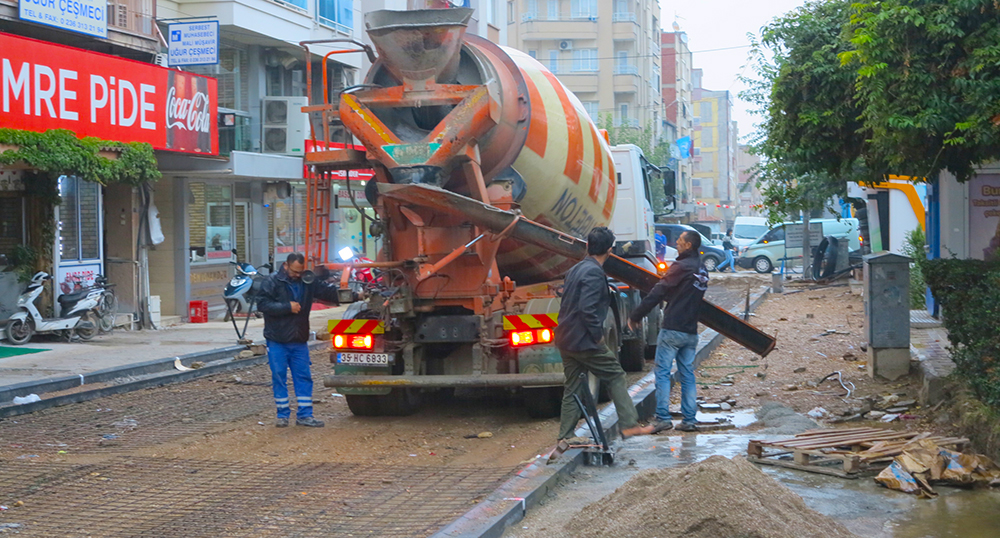 Yağmur demeden, çamur demeden beton dökme işi devam ediyorMANİSA Büyükşehir Belediyesi tarafından sürdürülen Turgutlu’nun prestij caddelerinin yapılanması kapsamında görevliler bu sabah aşırı yağmura karşın çalışmalarını sürdürüyor.Turgutlu’nun en işlek caddelerinden Akçakmak yolu Cumhuriyet okulu yakınlarında ki çalışmalarında işçiler betonlanma çalışmalarına ara vermeden sürdürüyor. Çalışanlar “ Durmak yok. Yağmur demenden, çamur demenden çalışmamız tüm hızıyla devam ediyor” diye konuştu. Akçakmak Caddesi esnafları da çalışmaların yoğun bir şekilde ilerlediğini, tamamlandığında güzel şeylerin ortaya çıkacağını belirtti. Bu çalışmalardan rahatsız olanlar ise sürücüler oluyor. Sürücüler beton mikser araçların yolu kapattığını öne sürerek şayet yetkililer trafik için önlem alırsa bir sıkıntı kalmaz” diye dertlerini dile getirdi.Öte yandan Akçakmak yolunda yolun karşısına geçmek isteyen yaşlı teyze, kollarına giren çalışanlar tarafından yolun karşına geçirilmesi olayı gören vatandaşların takdirini kazandı. Doğan ÇİZMECİ