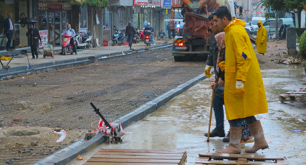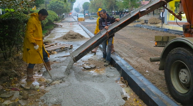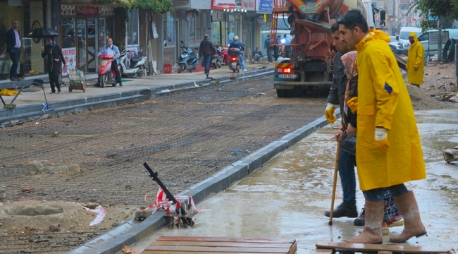 Yağmur , çamur demeden beton dökme işi devam ediyor