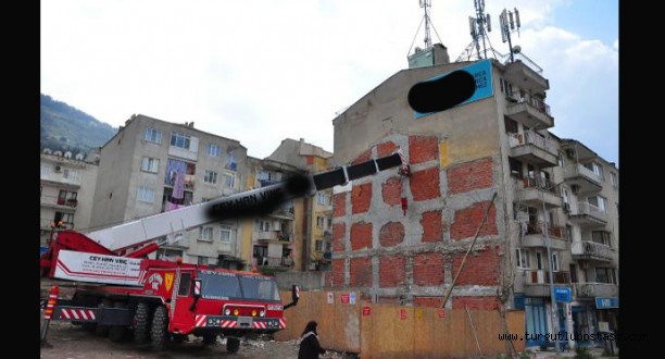 Murat Caddesi üzerindeki boş arsaya apartman yapılması için 20 gün önce inşaat çalışmalarına başlandı. Temel kazılırken, arsanın bitişindeki 5 katlı bina hasar gördü. Apartmanda çatlaklar oluşurken, binada yaşayan 5 aile evlerini boşalttı. Binanın yıkılma olasılığına karşı vinçle destek sağlandı. O günden beri bina vinç desteğiyle ayakta dururken; belediye tehlike yaratan bina için yıkım kararı verdi. Yüklenici Nag İnşaat firması ise temeline zarar verdiği binayı 600 bin lira bedelle satın aldı. Ancak firma, çatıdaki baz istasyonları yüzünden binayı yıkamadı.