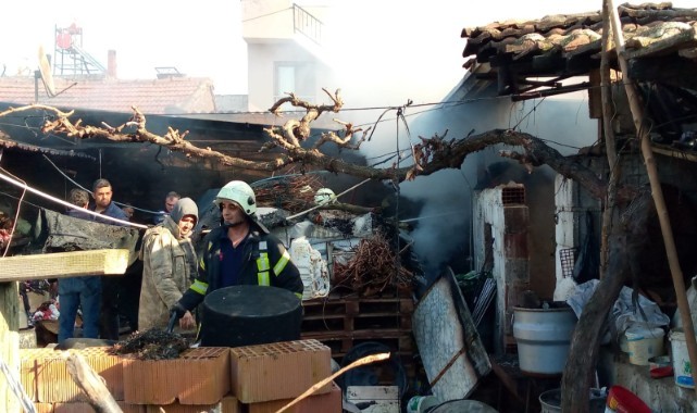 Yangın çıkan avlulu evde büyük hasar meydana geldi