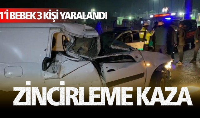 Yanık tedavisinden dönen bir yaşındaki bebek trafik kazasında yaralandıİzmir’in Kemalpaşa ilçesinde meydana gelen ve 3 aracın karıştığı trafik kazasında aralarında 1 yaşında bir bebeğin de bulunduğu 3 kişi yaralandı. Kazada yaralanan bebeğin, İzmir’de bulunan bir hastanede yanık tedavisi gördüğü öğrenildi.Olay bu akşam saatlerinde İzmir-Ankara Karayolu Bağyurdu kavşağı yakınlarında meydana geldi. İzmir’de bulunan bir hastaneden Ankara yönüne gittiği öğrenilen İzmir- Ankara Karayolunda bulunan bir tavuk kesimhanesine tavuk getirdiği öğrenilen D.Ç yönetimindeki 16 JRB XXX plakalı hafif ticari araç, İzmir- Ankara Karayolunda bulunan bir işletmeden çıkan R.A yönetimindeki 45 RX XXX plakalı TIR’a çarptı. Kazada hafif ticari aracın arkasında seyir halinde olan İ.K yönetimindeki 01 SU XXX plakalı otomobil de duramayarak, kaza yapan araçlara çarptı. İhbar üzerine olay yerine polis, itfaiye ve sağlık ekipleri sevk edildi.Kazada hafif ticari araçta bulunan H.Ç(1) , D.Ç (19) H.Ç (44) yaralandı. Yaralılar, sağlık ekipleri tarafından Turgutlu Devlet Hastanesi Acil Servisine kaldırıldı.Yaralıların sağlık durumlarının iyi olduğu öğrenilirken, kazada yaralanan 1 yaşındaki bebeğin, bir süredir İzmir’de bulunan bir hastanede yanık tedavisi gördüğü ve kaza sırasında tedaviden döndükleri öğrenildi.