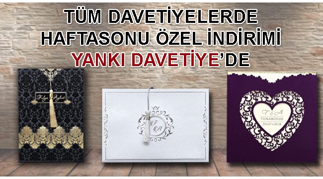 Düğün, Nişan, Sünnet davetiyelerinde hafta sonuna özel indirimler ile Birbirinden Güzel Çeşitlerimizi incelemek için sizleri ofisimize bekliyoruz.İnstagram:@yankidavetiyeturgutluTelefon: 313 11 46Adres: Altay Mahallesi Yorgancılar Sokak No:3(Düğmeci Mustafa Yanı)