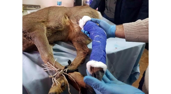 MANİSA'nın Soma ilçesinde, aracın çarptığı karaca için kurumlar seferber oldu. Yaralı karaca, kırılan sol bacağının ameliyat edilmesi için Manisa Büyükşehir Belediyesi Hayvan Bakım Merkezi'ne gönderildi.Soma ilçesi Yağcılı Mahallesi'nin Suçıktı mevkisinde, bugün saat 09.00 sıralarında, yol kenarında vatandaşlar, yaralı karaca bulundu. Vatandaşlar, aracın çarptığı düşünülen karacayı, Yağcılı Jandarma Karakol Komutanlığı'na götürdü. Jandarma, durumu Akhisar Doğa Koruma ve Milli Parklar Şefliği'ne bildirdi. Bunun üzerine Doğa Koruma ve Milli Parklar Şefliği yetkilileri, karacayı teslim alıp, Kırkağaç Belediyesi Hayvan Kliniği'ne getirdi. Burada Veteriner Volkan İşler tarafından yapılan kontrolde, karacanın sol arka bacağında kırık, ağzı ve vücudunun diğer yerlerinde de darbeye bağlı yaralanmalar olduğu belirlendi. Yaralılarına yapılan müdahalenin ardından hayvanın kırılan bacağı yerine oturtulup, sabitlendi. Ancak, kırılan bacağın ameliyatı için yeterli teknik donanımın bulunmaması nedeniyle, karaca Manisa Büyükşehir Belediyesi Hayvan Bakım Merkezi'ne götürüldü. Ameliyatının burada da mümkün olmaması halinde karacanın İzmir'in Çiğli ilçesi Sasalı Mahallesi'ndeki İzmir Doğal Yaşam Parkı'na gönderileceği belirtildi. Karaca'nın gerekli tedavisinin yapılıp, rehabilitasyonunun tamamlanmasının ardından tekrar doğal ortamına bırakılacağı bildirildi.DHA