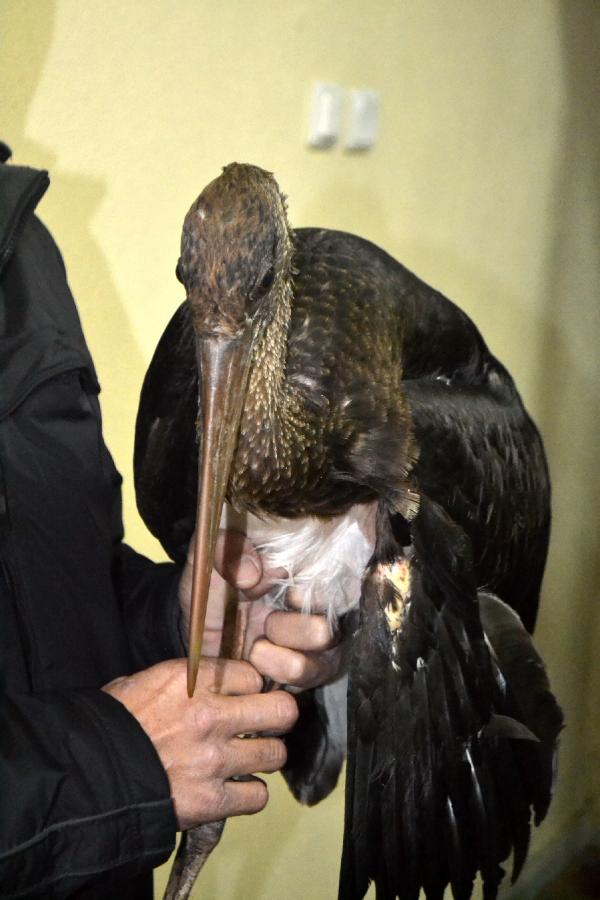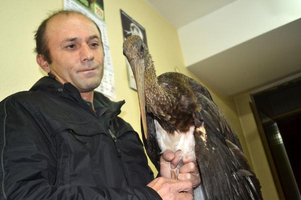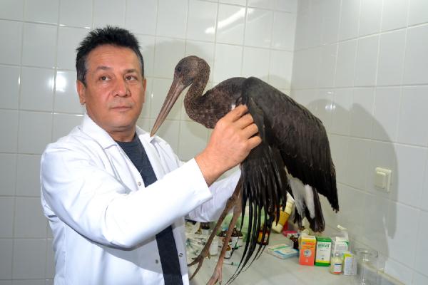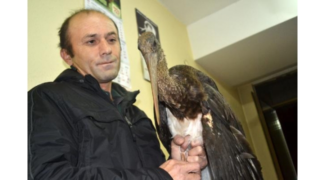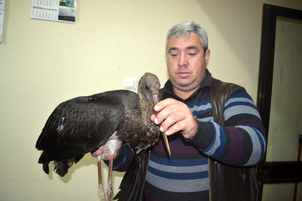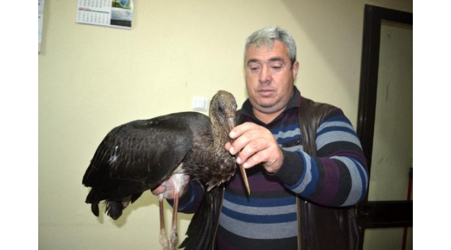 Yaralı halde bulunan Kara leylek tedavi altına alındı