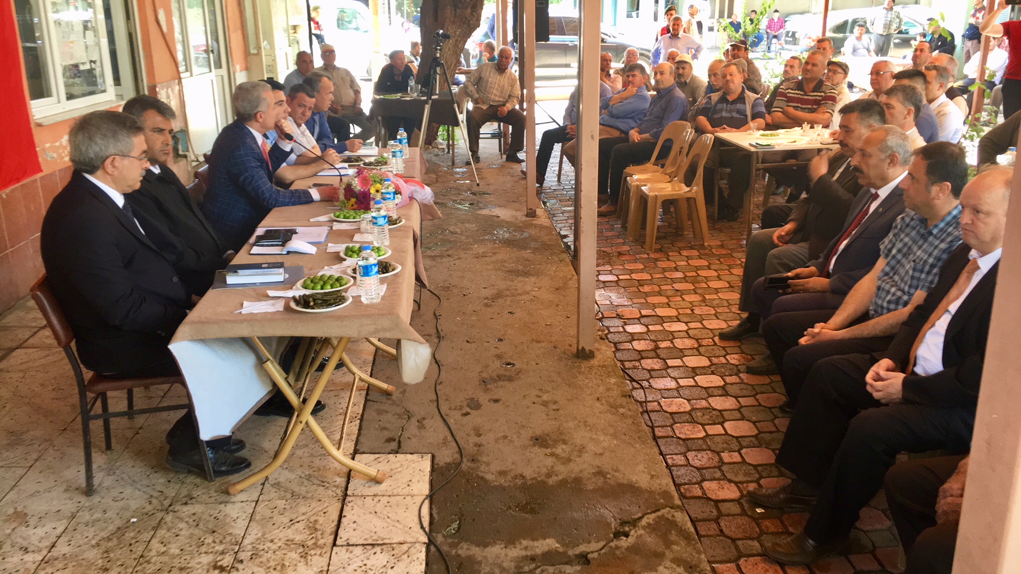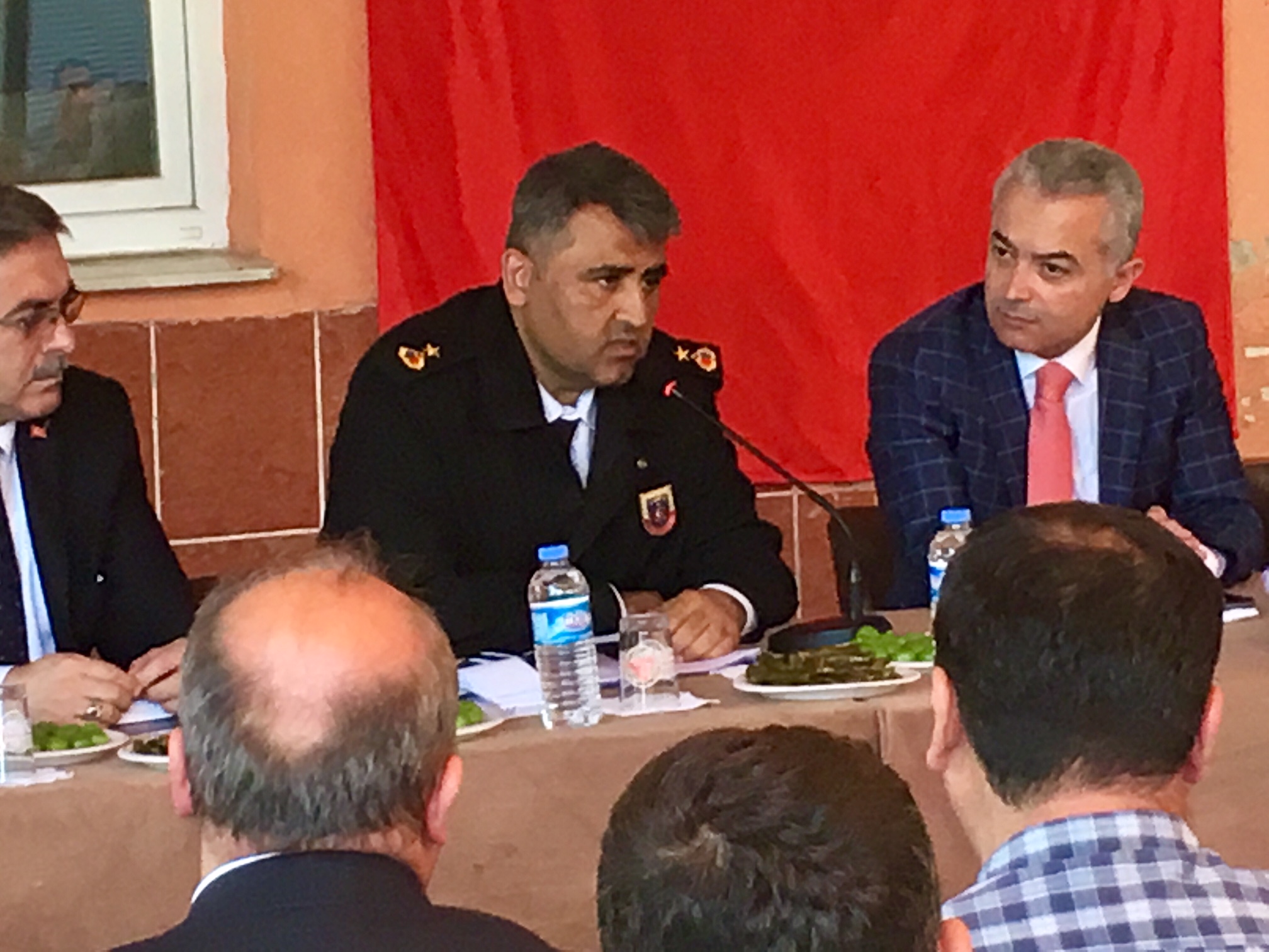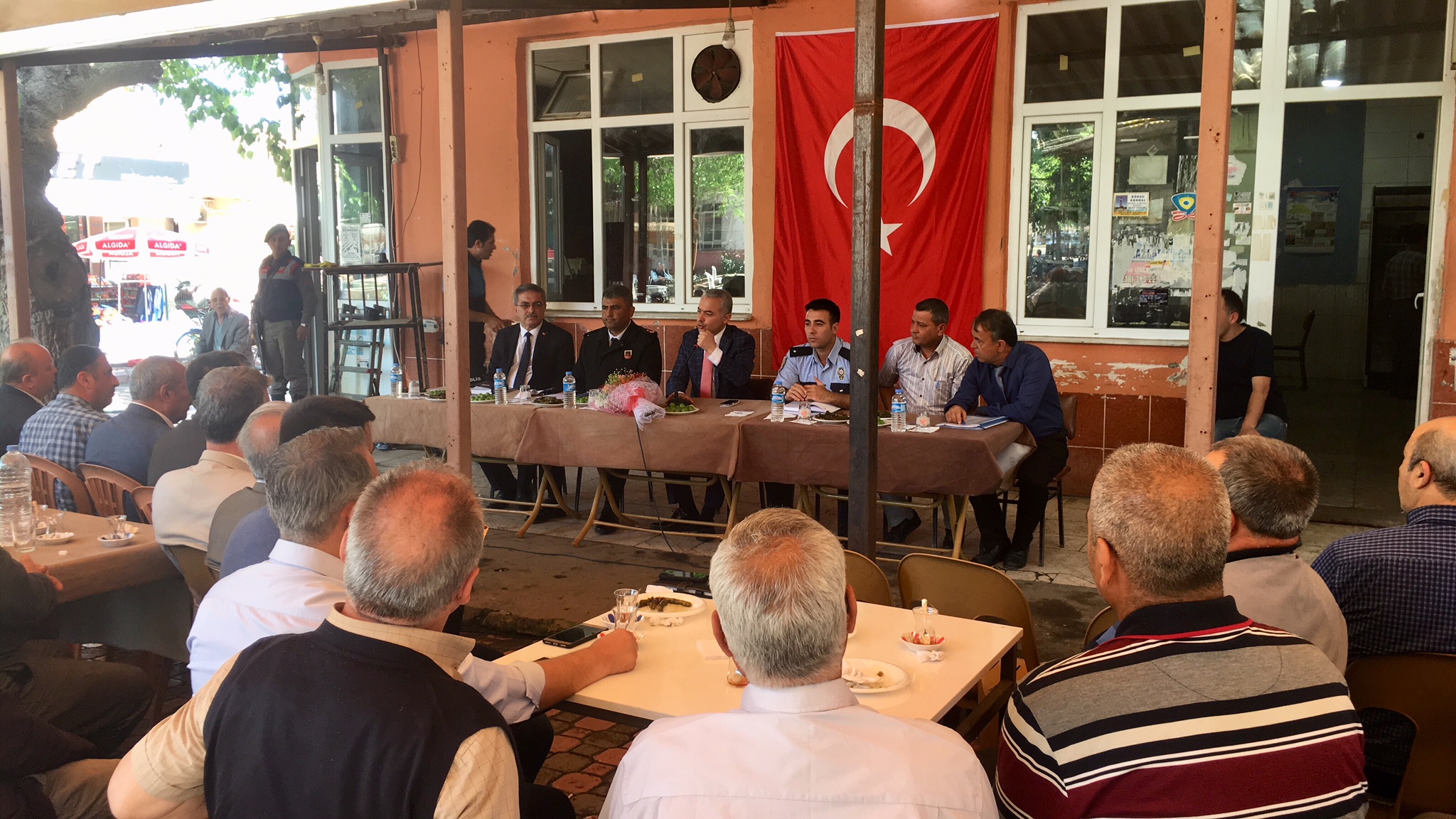 TURGUTLU Kaymakamlığının her ay düzenlediği güvenlik toplantısı. Turgutlu’nun Urganlı Mahallesi’nde bir kahvehane bahçesinde yapıldı.