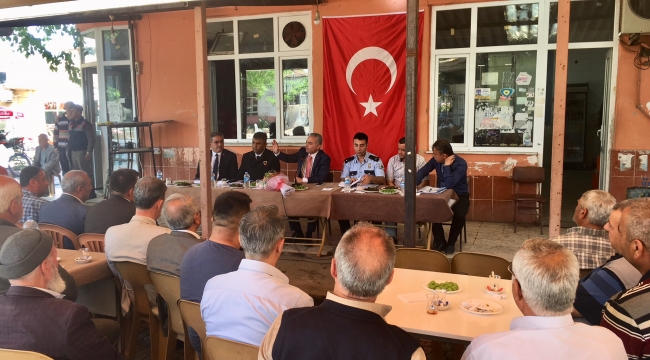 TURGUTLU Kaymakamlığının her ay düzenlediği güvenlik toplantısı. Turgutlu’nun Urganlı Mahallesi’nde bir kahvehane bahçesinde yapıldı.Turgutlu Kaymakamı Uğur Turan vatandaşlara seslendi, onların sorunlarını dinledi."Ben dahi Kaymakam olarak kırmızı ışıkta durmak zorundayım. Lütfen trafik kurallarına uyalım ki canımız yanmasın, malımız heba olmasın "dedi.Bu sabah saat 11.00 de bir çay bahçesinde düzenlenen halk toplantısına Turgutlu Belediye Başkan Yardımcısı İskender Tunç, Turgutlu İlçe Jandarma Komutanı Binbaşı Muhhamet Evren, Urganlı Mahalle Muhtarı Tarık Kayabaş, Turgutlu Emniyet Müdürlüğü amirlerinden Komiser Yardımcısı Halil İbrahim Başkart, Turgutlu Belediyesi Kırsal Hizmetler Müdürü Aydın Lenger ,Turgutlu Milli Eğitim Müdürü Mehmet Ölmez, Turgutlu İlçe Sağlık Müdürü Dr.Bilgehan Hasyiğit , Turgutlu Muhtarlar Dernek Başkanı,okul müdürleri ve vatandaşlar katıldı.Açılış konuşmasını yapan Kaymakam Uğur Turan, katılımlardan dolayı muhtarlara ve vatandaşlara teşekkür etti.Jandarma Komutanı Muammet Evren, tarım sezonun açıldığını belirterek "Traktör kullanma kurallarına riayet edilmesini istedi. Şüpheli gördükleri Suriyeliler’i kolluk görevlilerine bildirmelerini bunun yanı sıra kimliği olmayan ve valilikten çalışma belgesi olmayan Suriyeliler'i arazilerde çalıştırmamalarını "istedi.Traktör kullanırken ve Suriyeli işçi çalıştırılırken tolerans isteyen Urganlı Mahalle Muhtarı Tarık Kayabaş ‘a Kaymakam Turan “Bizler kanunlara uymak zorundayız. Ancak bizler sizlere kaynakamlık olarak yardım etmeye hazırız.Çalışacak yabancı uyruklu işçilerin içme suyu,barınma konularında yardımcı olmaya hazırız.”dedi.Urganlı’da PTT şubesi sorunun çözüldüğünü belirten Kaymakam Turan , vatandaşların hemzemin geçitinin kapatıldığını, Urganlı’daki yol onarım ve içme suyu hatlarıyla ilgili çalışmalar yarım bırakıldı. Bir başka vatandaşın ise bağlardaki, bahçelerdeki trafoların çalındığının söylemesi üzerine Kaymakam Turan , jandarmanın trafo hırsızlarını tespit ettiklerini yakalanmasının an meselesi olduğunu kaydetti.Turgutlu Belediyesi Kırsal Hizmetler Müdürü Aydın Lenger ise “ Ben buraya gelmeden önce MASKİ’den bilgi aldım. Yol onarım ve içme suyu çalışmaları için 2017 yılında ihalelere itiraz olmasından dolayı çalışma yapılamadığını ancak 2018 yılı yatırım proğramına alındığı” söyledi.Kaymakamdan akülü araç isteyen Kasım Karakaya isimli yaşlı amcanın isteği ise Kaymakam Turan tarafından olumlu karşılandı. Yaşlı amcanın Turgutlu Sosyal Yardımlaşma Vakfına başvurmasını istedi.Bir başka vatandaşın ise cumartei ,pazar günleri aşı yaptırabilecekleri bir hemşirenin olmadığını , Turgutlu’ya gidemiyecek durumda olanların zor durumda kaldıklarını bildirmesi üzerine konunun çözümlenmesi için İlçe Sağlık Müdürü Dr. Bilgehan Hasyiğit’i görevlendirdi.Doğan ÇİZMECİ
