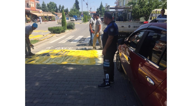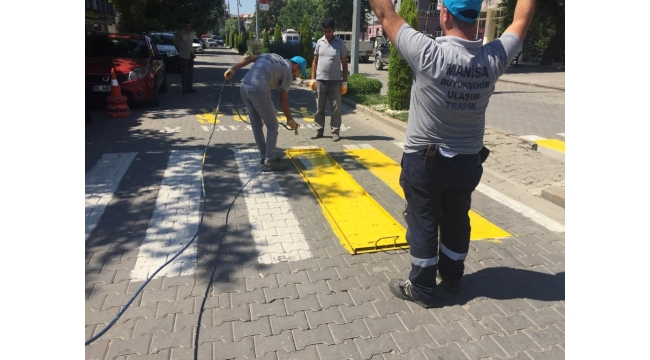 Yaya Önceliği Uygulaması Manisa Büyükşehir Belediyesinin ilçelerde belirlenen noktalara; yaya önceliğini ifade eden ‘Önce Yaya’ ikonlarının montaj çalışmaları kapsamında Kula ilçesinin muhtelif caddelerinde de yaya önceliğini belirten şeritler çizildi. Trafikte yaya güvenliğinin ve üstünlüğünün sağlanması, can ve mal kayıplarının önüne geçilmesi amacıyla çeşitli çalışmalara imza atan Manisa Büyükşehir Belediyesi, ‘Önce Yaya’ uygulamalarını sürdürüyor. Manisa Büyükşehir Belediyesi Ulaşım Daire Başkanlığı Trafik Hizmetleri Şube Müdürlüğü tarafından gerçekleştirilen çalışmalar doğrultusunda Kula ilçesinde de muhtelif mahalle ve caddelerinde yaya geçidi şeritleri çekildi. Araç sürücülerinin yaya geçidine uygun mesafede yavaşlaması ve yayaların geçiş üstünlüğünün korunması için yapılan çalışma, ilçe halkının da beğenisini kazandı. Ulaşım Dairesi Başkanlığı ekipleri, çalışma takvimi kapsamında ‘Önce Yaya’ uygulamasını il genelinde hayata geçirerek, trafikte yaya güvenliğinin arttırılmasına destek olmaya devam edecek HABER MERKEZİ