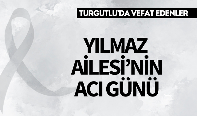 Yılmaz Ailesi’nin Acı GünüTurgutlu ilçesi sakinlerinden Nazmi Yılmaz vefat etti, cenazesi bugün Pazar Camii’nde öğle namazını müteakip kılınacak cenaze namazından sonra Yeni Kabristan’da toprağa verilecek.Yakınları; Kızı Cevriye Yılmaz Yağan, Raziye Yılmaz, Eşi Nerime Yılmaz, Damadı Yağızhan YağanMerhuma Allah'tan rahmet, yakınlarına başsağlığı dileriz.