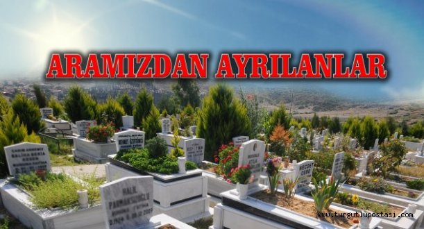 YitirdiklerimizTURGUTLU İlçesi sakinlerinden Selvet Konar hakkın rahmetine kavuştu.Cenazei bugün Göçmen Camii’nde öğle vakti kılınacak cenaze namazı sonrası Turgutlu Belediyesi Yeni Mezarlığında toprağa verilecek. Oğlu Ali Konar, kızı Mehtap Konar, abisi Mahmut KonarTURGUTLU İlçesi sakinlerinden Mefkure Erkol yaşamını yitirdi .Cenazei bugün Dereköy Camii’nde öğle vakti kılınacak cenaze namazı ardından Turgutlu Belediyesi Yeni Kabristanlığı’nda sevenleri tarafından toprağa verilecek. Damadı Ezc. Mustafa Öztemel , damadı Ali Kemal GülgevÖlenlere Allah’tan rahmet yakınlarına sabırlar dileriz