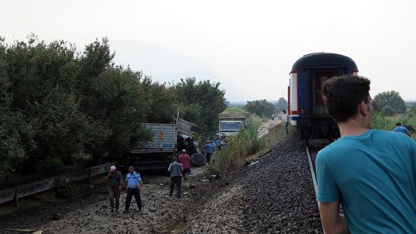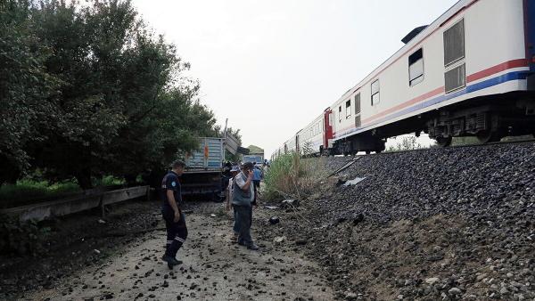 Yolcu treni hemzemin geçitte kamyona çarptı: 1 yaralı