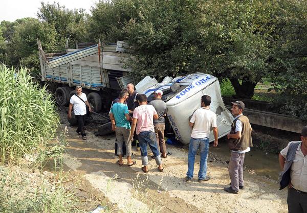 Yolcu treni hemzemin geçitte kamyona çarptı: 1 yaralı MANİSA'nın Turgutlu İlçesi'nde, yolcu treninin kontrolsüz hemzemin geçitte çarptığı kamyonun şoförü 38 yaşındaki Mesut Güler yaralandı. Kaza, dün saat 16.30 sıralarında, Sabancı Mevkii'nde meydana geldi. Alaşehir- Manisa arası sefer yapan 527 sayılı yolcu treni, kontrolsüz hemzemin geçitte, Mesut Güler'in yönetimindeki 59 TA 2.. plakalı kamyona çarptı. Mesut Güler, kamyonda sıkışarak yaralandı. İhbar üzerine kaza yerine gelen AKS 110 ekipleri, Güler'i sıkıştığı yerden kurtardı. Sağlık ekipleri Güler'i ambulansla Turgutlu Devlet Hastanesi'ne kaldırıldı. Adı öğrenilemeyen makinistin ifadesine başvuruldu. Kaza yerinde yapılan incelemenin ardından kamyon bulunduğu yerden kaldırıldı. Bir süre sonra ise yolcu treni yoluna devam etti. Jandarma, kazayla ilgili soruşturma başlattı. Tren yolcularından Candan Tarlak, "Makinist fark edince korna çaldı. Ancak yapacak bişey kalmadı. Durunca trenden inip yaralıyı kontrol ettik" dedi.NURULLAH ÇANKAYA