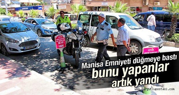 MANİSA İl Emniyet Müdürlüğü'ne bağlı Trafik Tescil ve Denetleme Şube Müdürlüğü ekipleri, özellikle kendi araçları için duba ve benzer malzemelerle özel park yeri ayıran 17 ayrı işyerine 318'er lira ceza uyguladı.www.manisadabugun.com haber sitesinde bugün yer alan habere göre: "İl Emniyet Müdürlüğü'ne bağlı Trafik Tescil ve Denetleme Şube Müdürlüğü, işyerlerinin yol kenarlarında duba veya çeşitli malzemelerle park yeri ayırmalarına yönelik gelen yoğun şikayetler üzerine çalışma başlattı. Trafik Tescil ve Denetleme Şube Müdürü Yusuf Onat, Şehzadeler İlçe Emniyet Müdürü Nejdet Çoban, Yunusemre İlçe Emniyet Müdürü Vekili İdris Yıldırım ve beraberindeki polis ekipleri; cadde ve sokaklarda uygulama yaptı. Uygulamada işyerlerinin önünde duba, masa, sandalye veya benzeri eşyalarla kendilerine özel park yeri ayıranlara cezai işlem uygulandı. Yaklaşık iki saat süren uygulamada 17 işyerinin her birine Karayolları Trafik Kanunu'nun 14. Maddesine göre 318 Lira para cezası uygulandı. Uygulamada ayrıca, kaldırım üzerinde yayaların geçişi engelleyecek şekilde ürünlerini teşhir eden ve masa sandalye koyan işyerlerine de uyarıda bulunuldu. UYGULAMA SÜRECEK