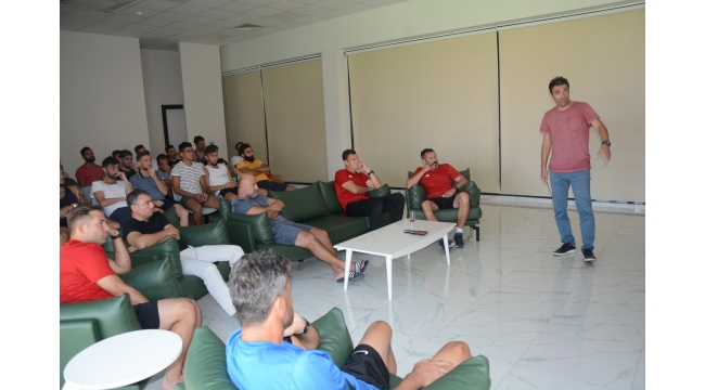 Yunus Yıldırım’dan Manisa Büyükşehir Belediyespor’a Oyun Kuralları Konusunda HatırlatmaFİFA kokartlı eski hakemlerimizden Yunus Yıldırım, Halil Onultmak Spor Tesisleri’nde Manisa Büyükşehir Belediyespor’un teknik heyet ve futbolcularına oyun kuralları konusunda hatırlatmalarda bulundu.Pazar günü ligin ilk haftasında Mümin Özkasap Spor Tesisleri’nde Zonguldak Kömürspor’u konuk edecek olan Manisa Büyükşehir Belediyespor’da hazırlıklarda sona doğru gelinirken, FİFA kokartlı eski hakemlerimizden Yunus Yıldırım, Halil Onultmak Spor Tesisleri’nde Manisa Büyükşehir Belediyespor’un teknik heyet ve futbolcularına oyun kuralları konusunda hatırlatmalarda bulundu.Çiçek Ve İsminin Yazılı Olduğu 45 Numaralı Manisa Büyükşehir Belediyespor Forması Hediye EdildiManisa Büyükşehir Belediyespor Teknik Direktörü Levent Devrim, seminerin sonunda oyun kuralları konusunda hatırlatmalarda bulunan Yunus Yıldırım’a teşekkür ederek çiçek takdim etti. Takım kaptanı Ufukhan Bayraktar’da, Yunus Yıldırım’a isminin yazılı olduğu 45 numaralı Manisa Büyükşehir Belediyespor forması hediye etti.