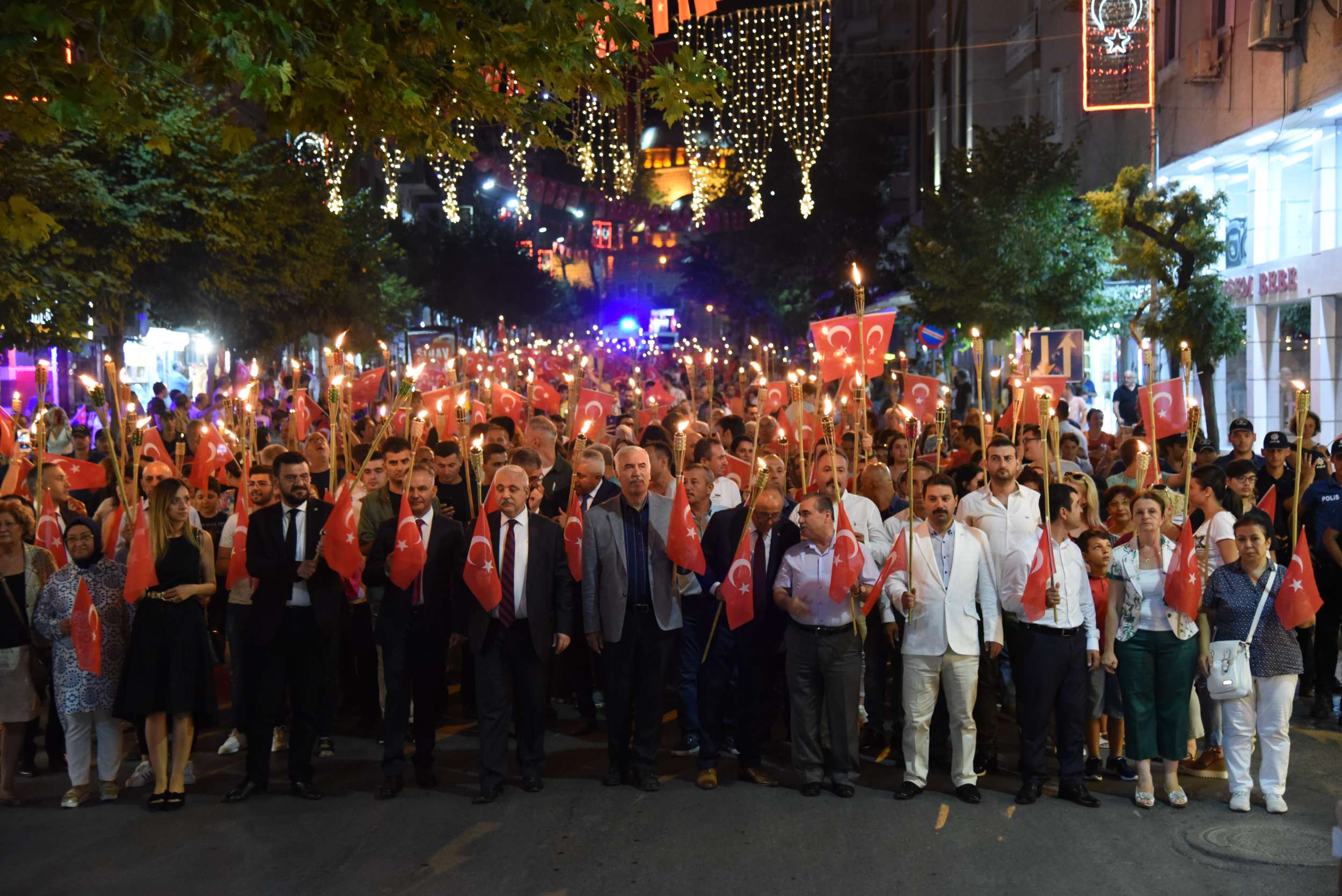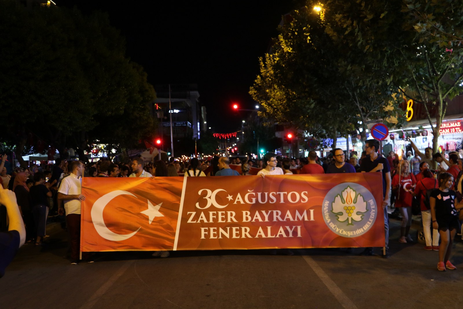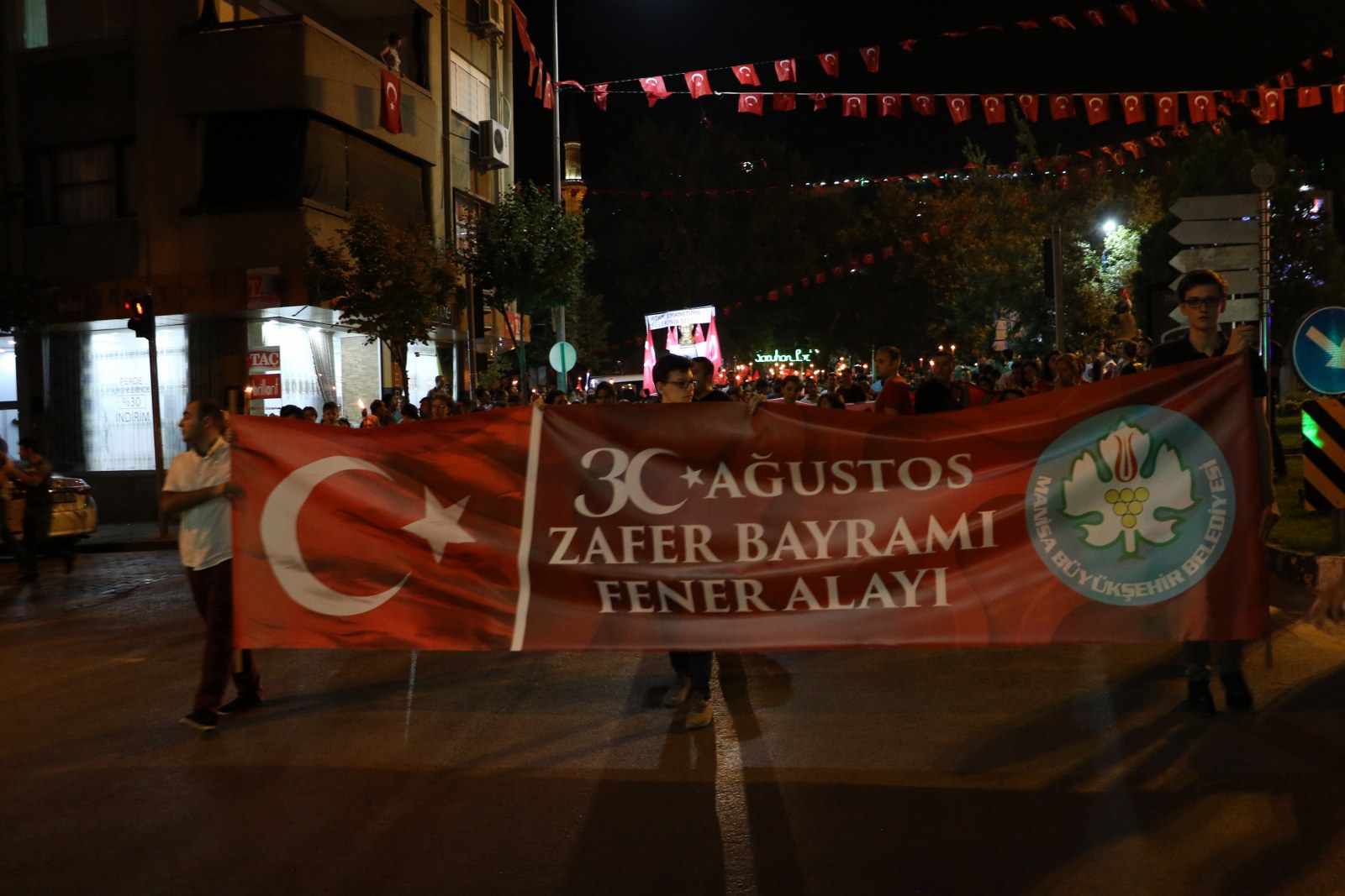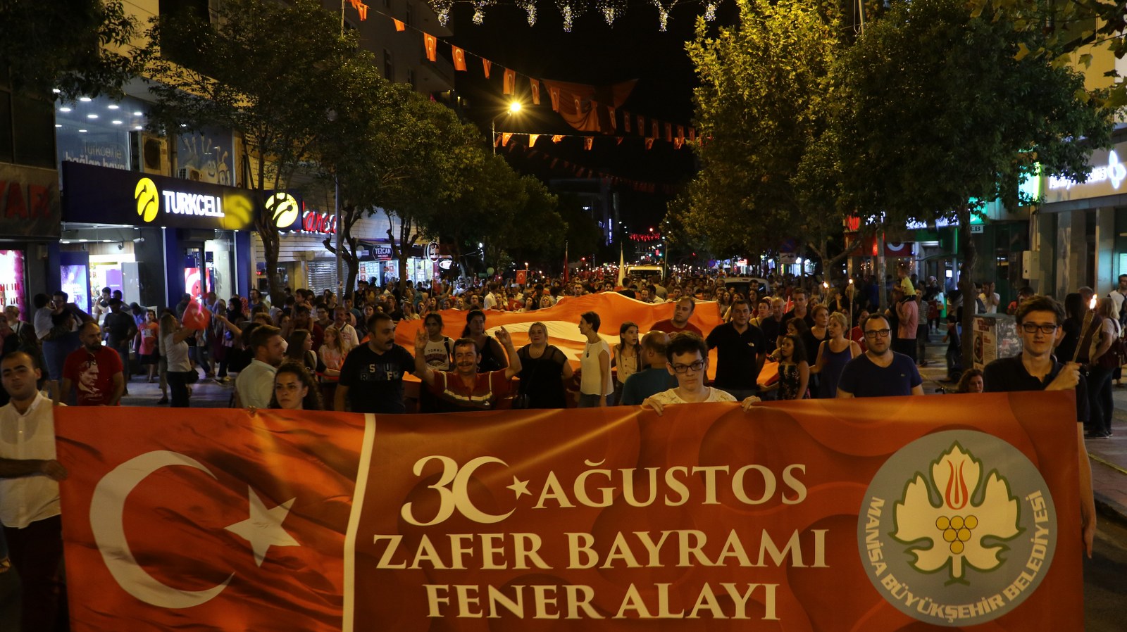 Zafer Bayramı Coşkusu Fener Alayı İle Katlandı 30 Ağustos Zafer Bayramı’nın 96’ncı yıl dönümünde binlerce Manisalı sokakları Türk Bayrağı ve fenerlerle aydınlattı. Sultan Camii önünden başlayarak, Cumhuriyet Meydanı’na kadar yürüyen Manisalılar, söyledikleri marşlarla da Büyük Zafer’in coşkusunu ikiye katladılar. 30 Ağustos Zafer Bayramı’nın 96’ncı yıl dönümünü tüm yurtta olduğu gibi Manisalılarda coşkuyla kutladı. Zaferin coşkusu Manisa Büyükşehir Belediyesi tarafından düzenlenen Fener Alayı ile katlandı. Sultan Camii önünde başlayan Fener Alayına Manisa Valisi Mustafa Hakan Güvençer, Manisa Büyükşehir Belediye Başkanvekili Mehmet Güzgülü, 1. Komando Eğitim ve Tugay Komutanı Albay Güven Dere, İl Jandarma Komutanı Tuğgeneral Erhan Can, İl Emniyet Müdürü Fevzi Bilgiç, Manisa Büyükşehir Belediyesi Genel Sekreter Yardımcısı Mustafa Genç, MHP İl Başkanı Erkan Öztürk, Manisa Milletvekilleri, kurum müdürleri, sivil toplum kuruluşları temsilcileri ile çok sayıda Manisalı katıldı.Marşlar ve Bando Eşliğinde YürüdülerEllerinde Türk Bayrakları ve fenerlerle Sultan Camii’nden Cumhuriyet meydanına kadar marşlar eşliğinde yürüyen Manisalılar renkli görüntüler oluşturdu. Cumhuriyet Meydanı’nda sona eren fener alayının ardından Milli Egemenlik Anıtı önünde küçük bir program düzenlendi. Manisa Büyükşehir Belediyesi Şehzadeler Mehteri ve askeri bando eşliğinde hep bir ağızdan marşları seslendiren Manisalılar, Büyük Zafer’i coşkuyla kutladı.