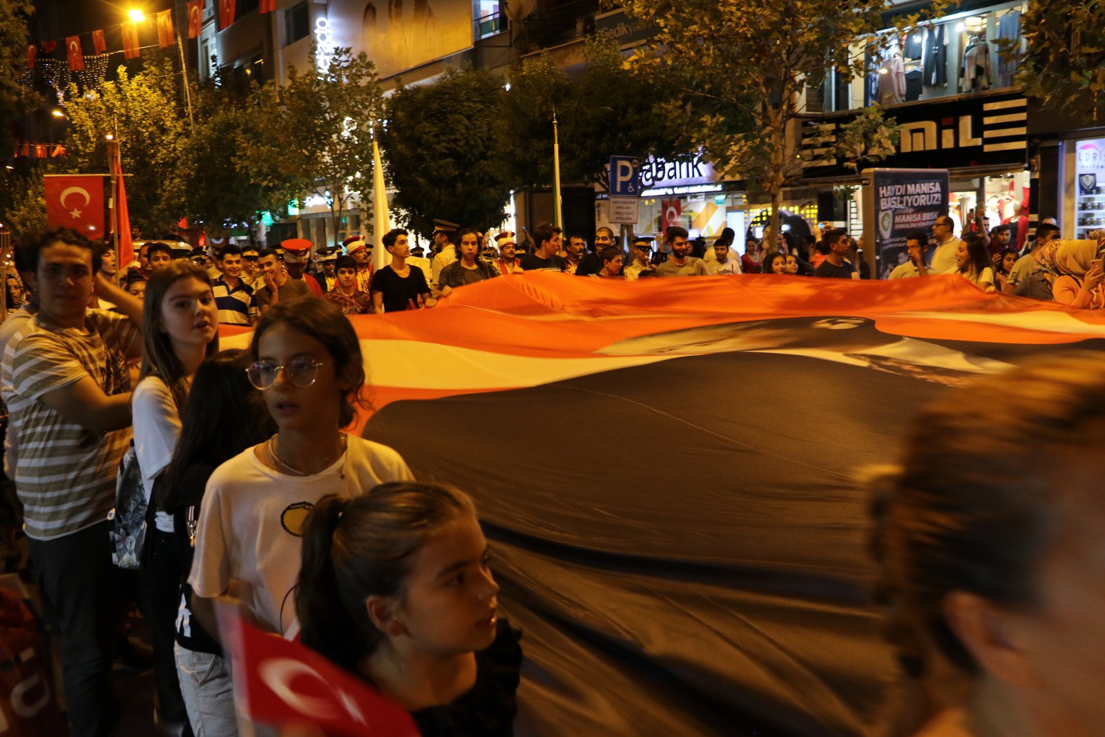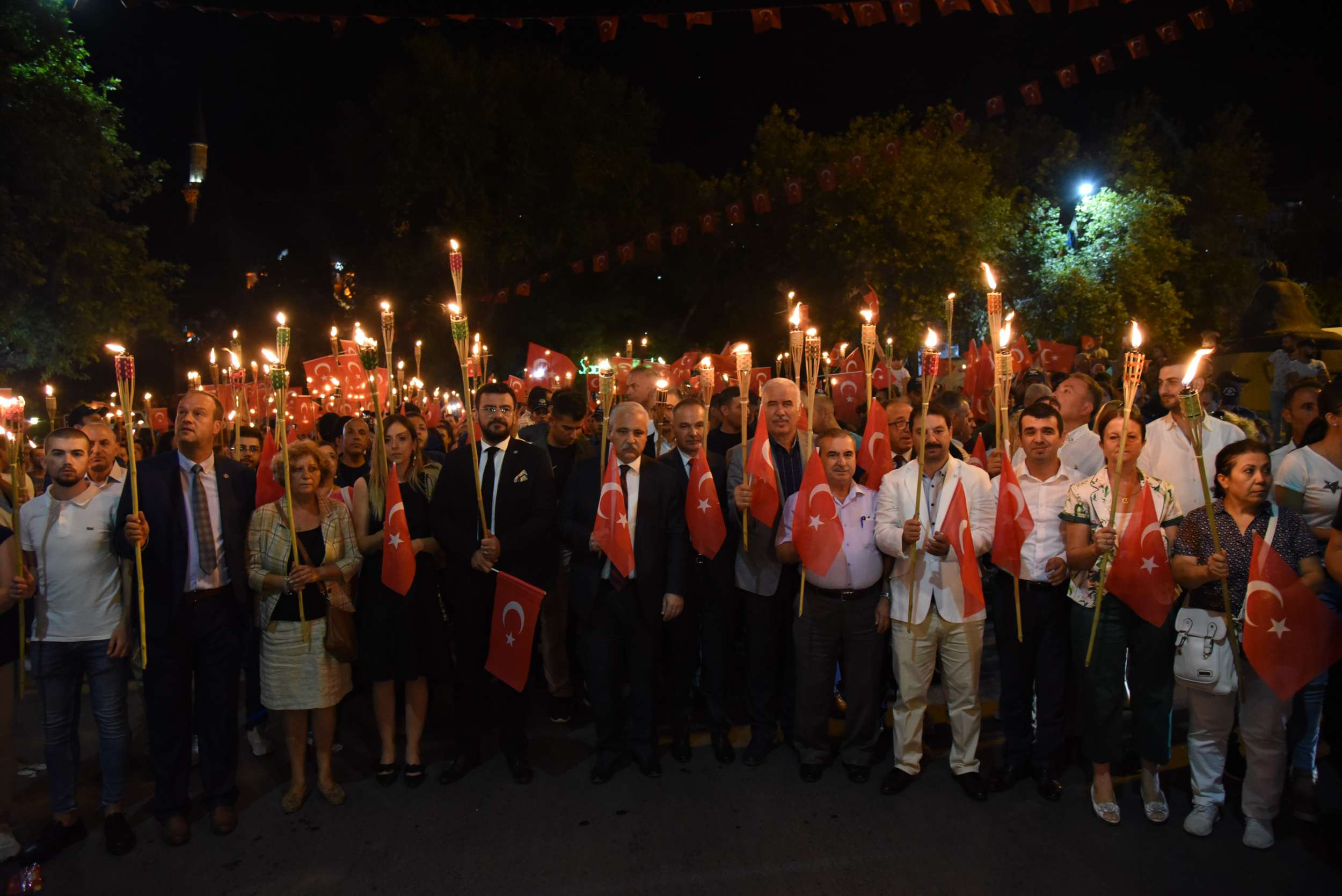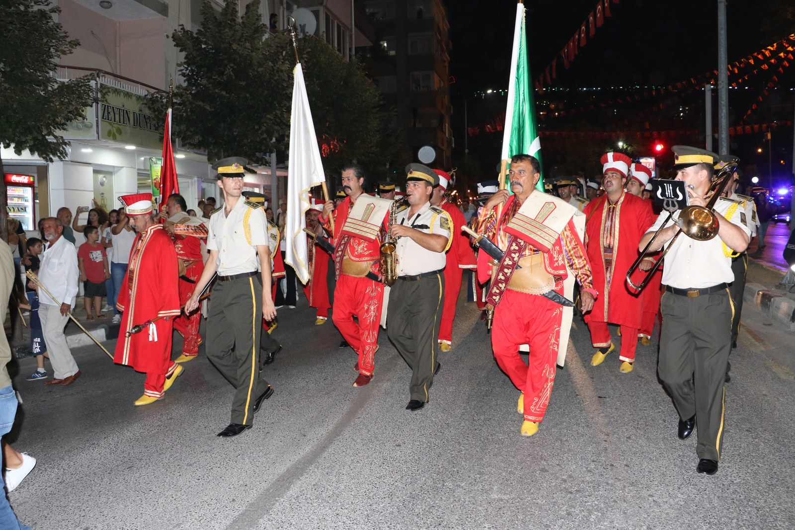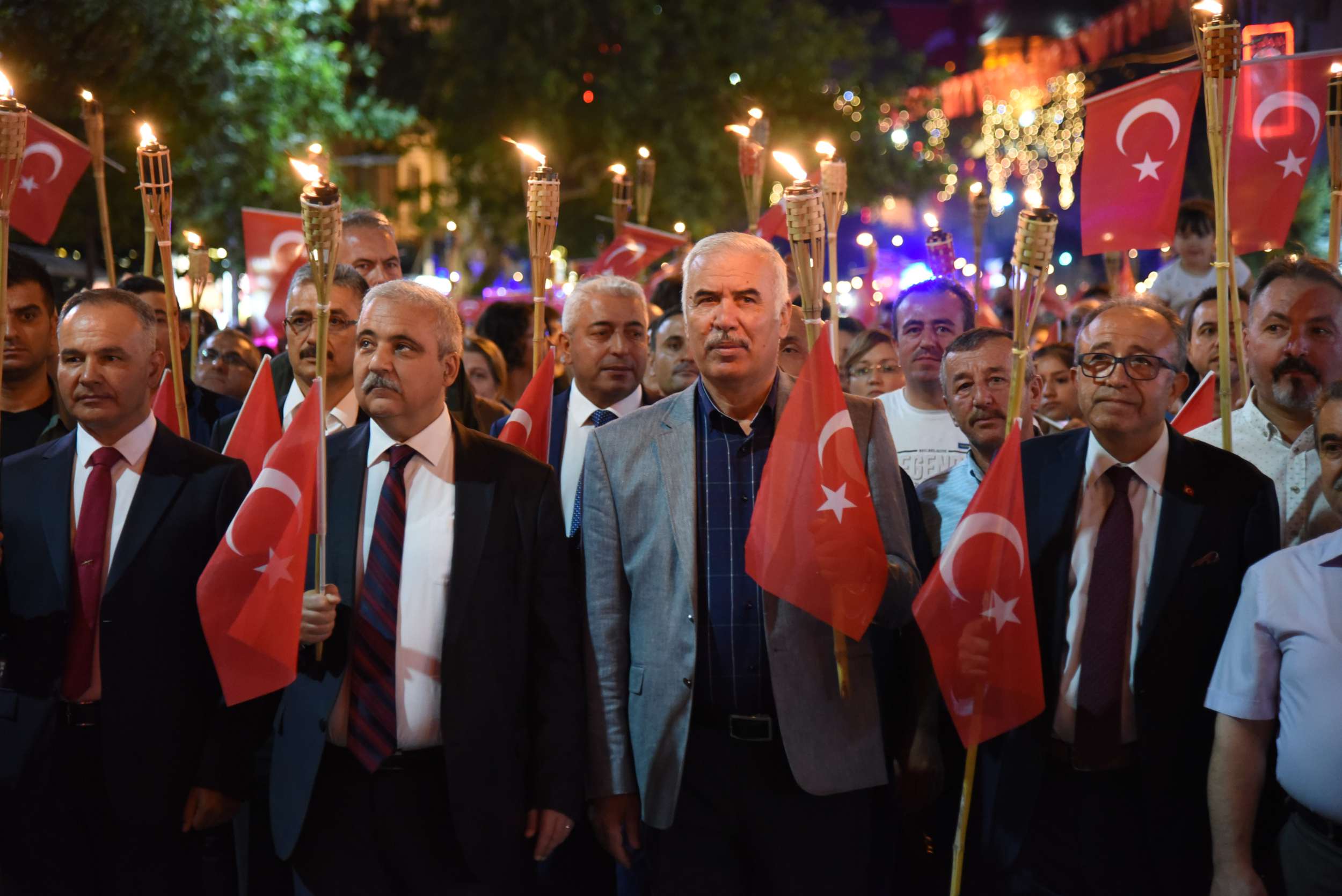 Zafer Bayramı Coşkusu Fener Alayı İle Katlandı 30 Ağustos Zafer Bayramı’nın 96’ncı yıl dönümünde binlerce Manisalı sokakları Türk Bayrağı ve fenerlerle aydınlattı. Sultan Camii önünden başlayarak, Cumhuriyet Meydanı’na kadar yürüyen Manisalılar, söyledikleri marşlarla da Büyük Zafer’in coşkusunu ikiye katladılar. 30 Ağustos Zafer Bayramı’nın 96’ncı yıl dönümünü tüm yurtta olduğu gibi Manisalılarda coşkuyla kutladı. Zaferin coşkusu Manisa Büyükşehir Belediyesi tarafından düzenlenen Fener Alayı ile katlandı. Sultan Camii önünde başlayan Fener Alayına Manisa Valisi Mustafa Hakan Güvençer, Manisa Büyükşehir Belediye Başkanvekili Mehmet Güzgülü, 1. Komando Eğitim ve Tugay Komutanı Albay Güven Dere, İl Jandarma Komutanı Tuğgeneral Erhan Can, İl Emniyet Müdürü Fevzi Bilgiç, Manisa Büyükşehir Belediyesi Genel Sekreter Yardımcısı Mustafa Genç, MHP İl Başkanı Erkan Öztürk, Manisa Milletvekilleri, kurum müdürleri, sivil toplum kuruluşları temsilcileri ile çok sayıda Manisalı katıldı.Marşlar ve Bando Eşliğinde YürüdülerEllerinde Türk Bayrakları ve fenerlerle Sultan Camii’nden Cumhuriyet meydanına kadar marşlar eşliğinde yürüyen Manisalılar renkli görüntüler oluşturdu. Cumhuriyet Meydanı’nda sona eren fener alayının ardından Milli Egemenlik Anıtı önünde küçük bir program düzenlendi. Manisa Büyükşehir Belediyesi Şehzadeler Mehteri ve askeri bando eşliğinde hep bir ağızdan marşları seslendiren Manisalılar, Büyük Zafer’i coşkuyla kutladı.