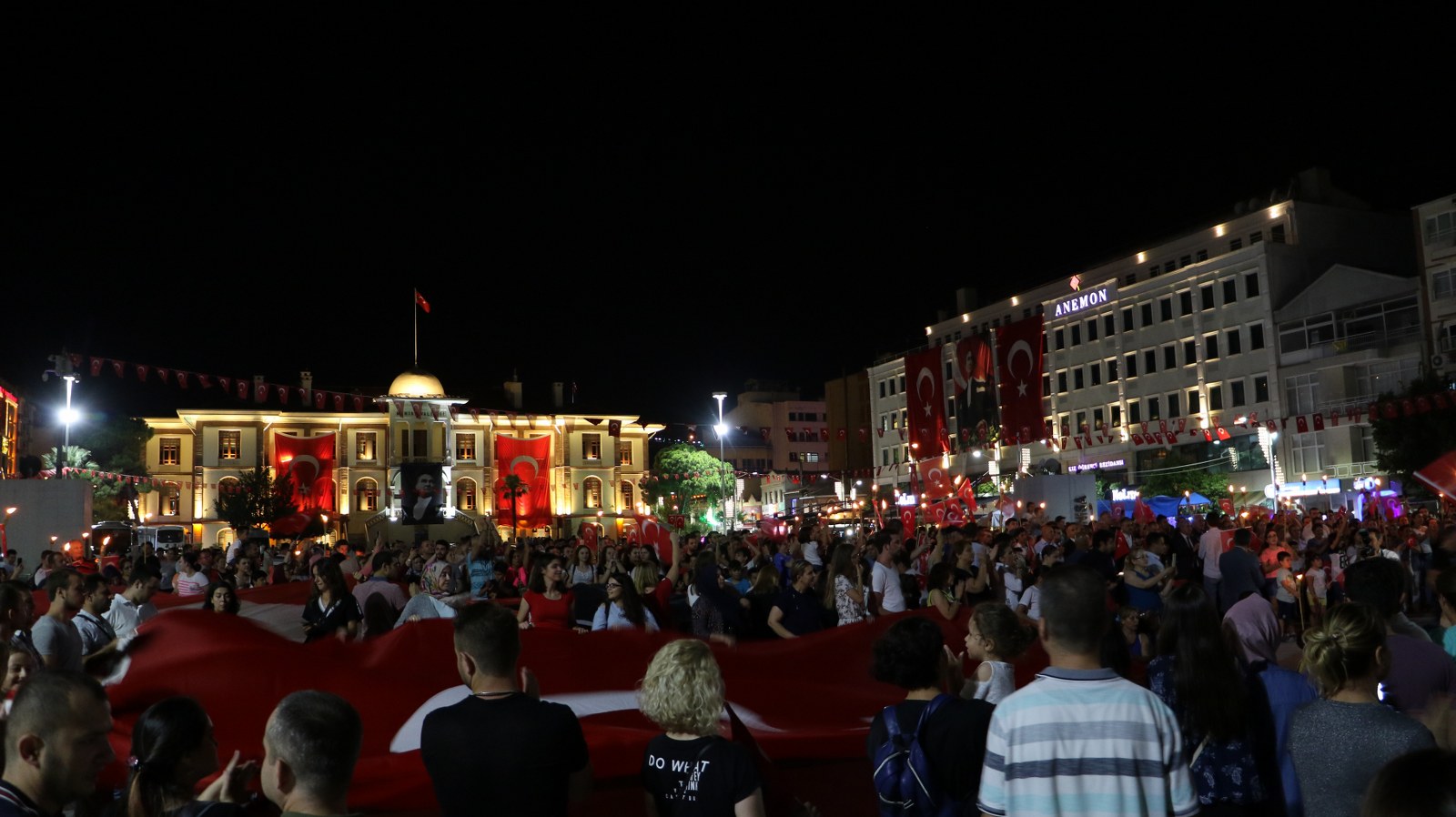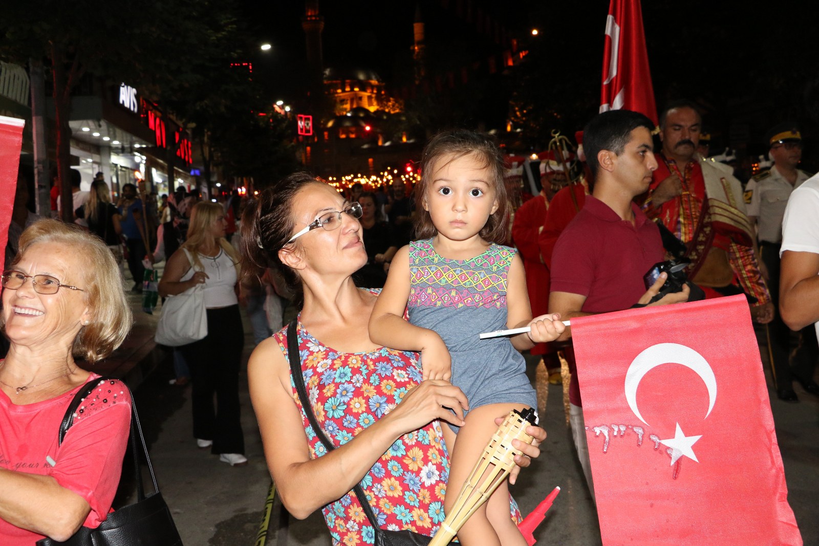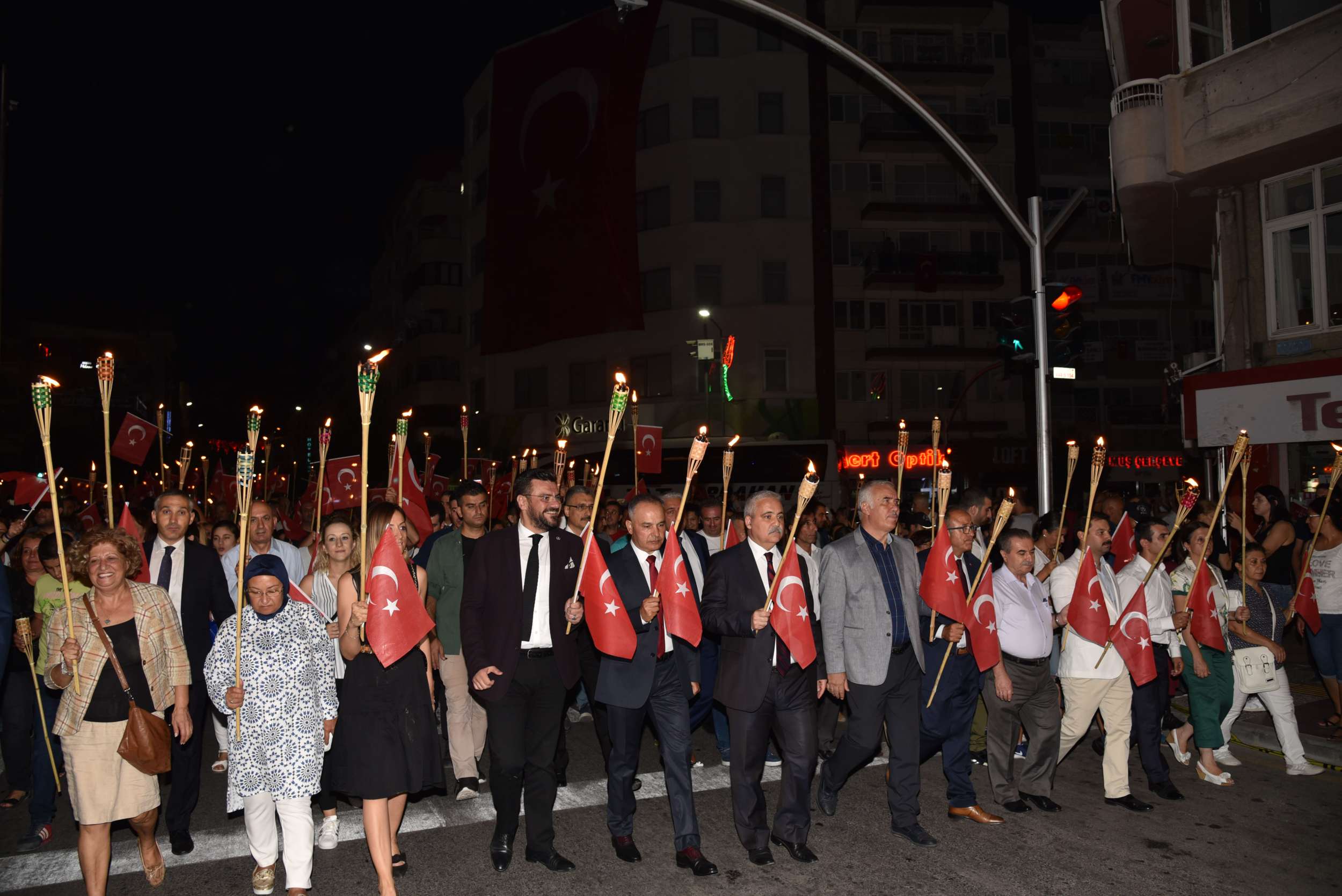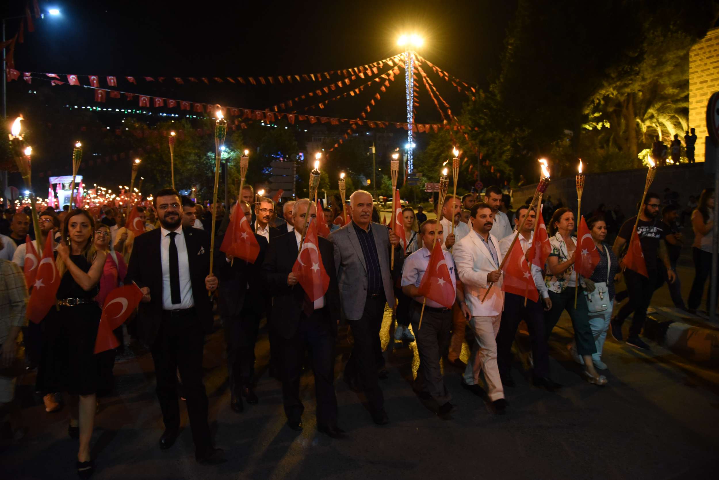 Zafer Bayramı Coşkusu Fener Alayı İle Katlandı 30 Ağustos Zafer Bayramı’nın 96’ncı yıl dönümünde binlerce Manisalı sokakları Türk Bayrağı ve fenerlerle aydınlattı. Sultan Camii önünden başlayarak, Cumhuriyet Meydanı’na kadar yürüyen Manisalılar, söyledikleri marşlarla da Büyük Zafer’in coşkusunu ikiye katladılar. 30 Ağustos Zafer Bayramı’nın 96’ncı yıl dönümünü tüm yurtta olduğu gibi Manisalılarda coşkuyla kutladı. Zaferin coşkusu Manisa Büyükşehir Belediyesi tarafından düzenlenen Fener Alayı ile katlandı. Sultan Camii önünde başlayan Fener Alayına Manisa Valisi Mustafa Hakan Güvençer, Manisa Büyükşehir Belediye Başkanvekili Mehmet Güzgülü, 1. Komando Eğitim ve Tugay Komutanı Albay Güven Dere, İl Jandarma Komutanı Tuğgeneral Erhan Can, İl Emniyet Müdürü Fevzi Bilgiç, Manisa Büyükşehir Belediyesi Genel Sekreter Yardımcısı Mustafa Genç, MHP İl Başkanı Erkan Öztürk, Manisa Milletvekilleri, kurum müdürleri, sivil toplum kuruluşları temsilcileri ile çok sayıda Manisalı katıldı.Marşlar ve Bando Eşliğinde YürüdülerEllerinde Türk Bayrakları ve fenerlerle Sultan Camii’nden Cumhuriyet meydanına kadar marşlar eşliğinde yürüyen Manisalılar renkli görüntüler oluşturdu. Cumhuriyet Meydanı’nda sona eren fener alayının ardından Milli Egemenlik Anıtı önünde küçük bir program düzenlendi. Manisa Büyükşehir Belediyesi Şehzadeler Mehteri ve askeri bando eşliğinde hep bir ağızdan marşları seslendiren Manisalılar, Büyük Zafer’i coşkuyla kutladı.