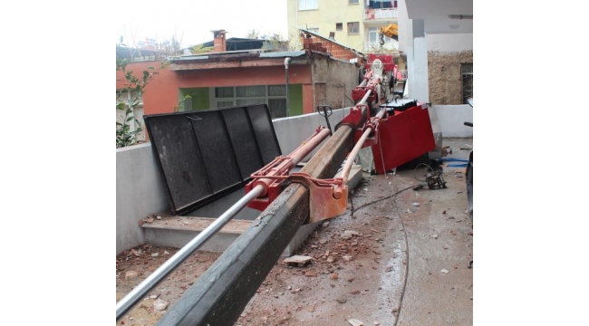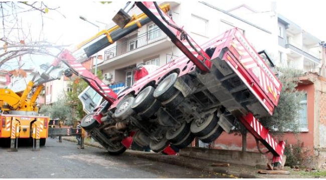 MANİSA'nın Alaşehir ilçesinde, kalorifer kazanı yüklü vincin sağ ön ayağı, zeminin çökmesiyle toprağa gömüldü. Vincin sol tarafı havaya kalkarken, kazan ise koparak, balkon demirlerine çarpıp, zemine düştü. Bu anlarda çevrede kimsenin bulunmaması, olası faciayı önlerken, uzaktan izleyenler ise kısa süreli panik yaşadı. Olay, saat 13.00 sıralarında, Yenice Mahallesi Keban Sokak 13 numaralı bina önünde meydana geldi. 4 katlı apartmanın bodrum katına, 500 kilo ağırlığındaki kalorifer kazanının indirilmesi için vinç getirildi. Vincin yüklenici ayakları, yere sabitlendi. Sokağın dar olması nedeniyle bir süre sonra vincin sağ ön ayağı, sokağın başındaki evin bahçesine denk geldi. Vinç görevlileri de bu sırada çalışmaya başladı. Vince yüklenen kalorifer kazanı kaldırılıp, arkada kalan binaya doğru taşındı. Bu sırada vincin zeminde bulunan sağ ön yüklenicisi, toprakla birlikte çöktü. Vincin sol tarafı havaya kalkarken, araç devrilmeyip, askıda kaldı. Kalorifer kazanı ise kopup, zemine düşerek, parçalandı. Kaloriferin konulacağı binadaki bazı evlerin balkon demirleri hasar gördü. Bu anlarda çevrede kimsenin bulunmaması, olası faciayı önlerken, uzaktan izleyenler ise kısa süreli panik yaşadı. Vincin kurtarılması için olay yerine 2 vinç getirildi. Ekipler, askıdaki vinci kurtardı.DHA