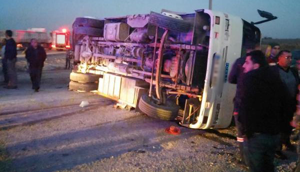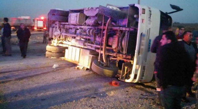 Tarım işçilerini taşıyan minibüsün de aralarında bulunduğu üç aracın karıştığı zincirleme trafik kazasında 21 kişi yaralandı.