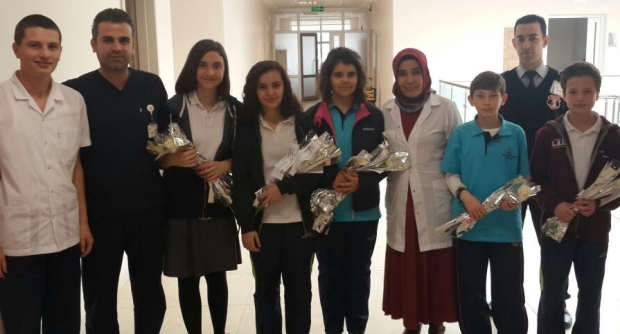 DÜNYA tıp bayramı nedeniyle Zirve Gündüzalp öğrencileri ve öğretmenleri tıp çalışanlarını ve doktorları ziyaret etti. Bir karanfille de olsa bu özel günlerinde yalnız bırakmadıklarını gösterdiler.
