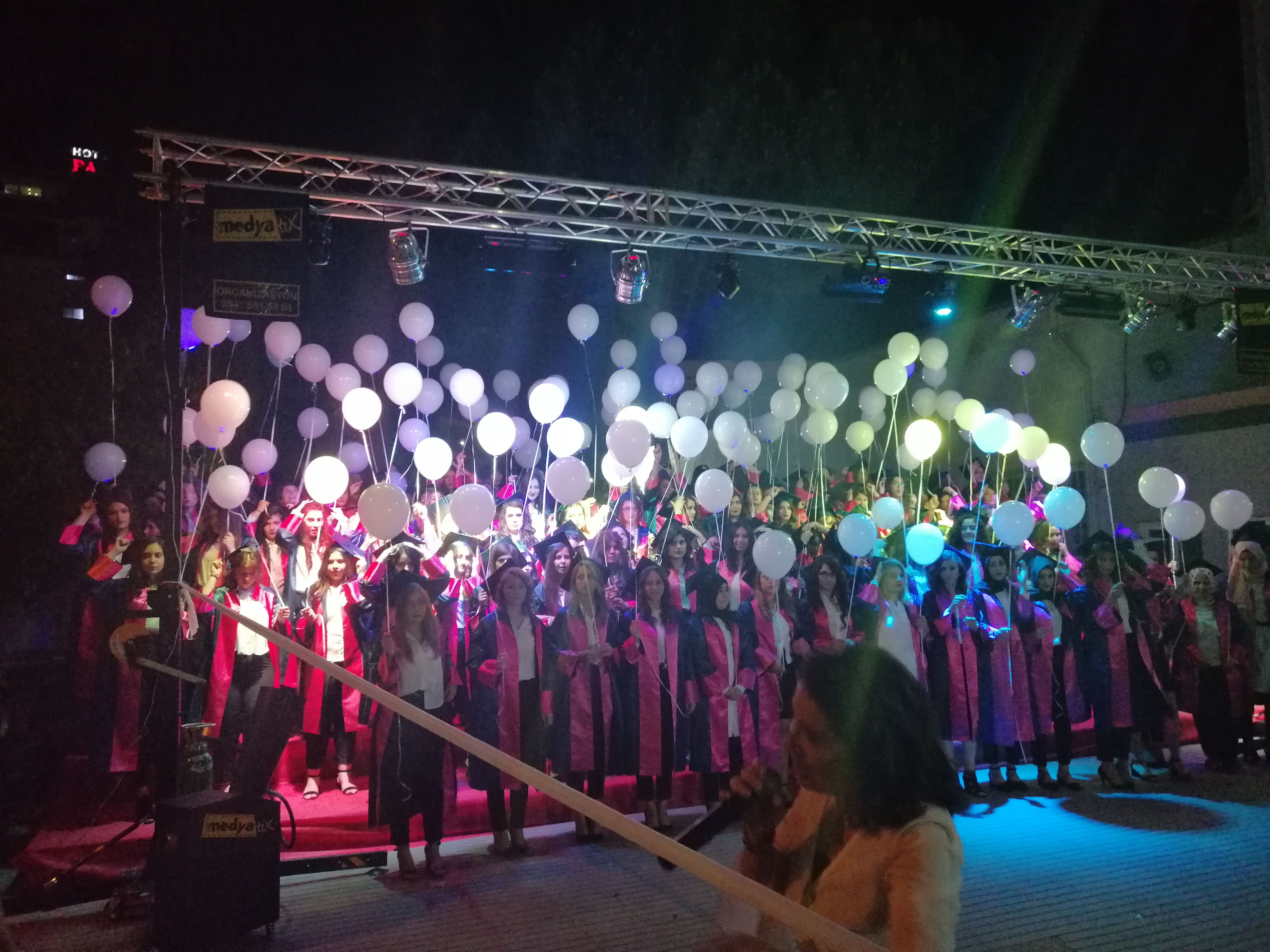 Zübeyde Hanım MTAL 2018-2019 öğretim yılı mezunlarını muhteşem bir törenle uğurladı.Saygı duruşu ve İstiklal Marşı ile başlayan gece okul müdürü Sevim Gökce'nin açılış konuşmasıyla başladı. Gökce konuşmasında velilere "Evlatlarınızı bizlere emanet ettiniz. Bizler de dört yıl boyunca onlara gözümüz gibi baktık. Tüm idarecilerim öğretmen arkadaşlarım onların koluna altın bilezik olacak mesleklerini kazandırmak için canla başla çalıştık" dedi. Öğrencilere gelecek hayatlarında başarılar dileyen Gökce'nin ardından, mezun öğrenciler adına Çocuk Gelişimi ve Eğitimi Alanı öğrencisi Gülben Yenir konuşma yaptı. Yenir konuşmasında tüm öğretmenlerine teşekkür etti. Törende tüm mezunlar gitar eşliğinde şarkılar söylediler. Bayrak flama devir teslim ve mezuniyet kütüğüne plaket çakılmasının ardından öğrenciler sınıflar halinde sahneye gelip mezuniyet belgelerini aldılar. Gecenin finali ise tam bir görsel şölene sahne oldu. Öğrenciler dilek balonlarını uçurdular. Okul bahçesine yerleştirilen volkanlar, ışık şelaleleri öğrencilerin keplerini fırlattıkları anda patlayarak geceyi aydınlattı. Her yıl mezuniyet törenlerinde yenilikler yapmayı, öğrenci ve velilerine unutulmaz anlar yaşatmayı hedefleyen Zübeyde Hanım MTAL bu yıl da farkını gösterdi.Haber Merkezi